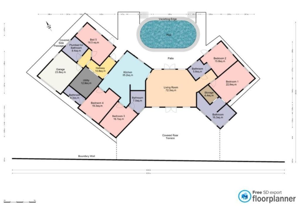 - Approx. 300m² of covered living space, including indoor and outdoor areas