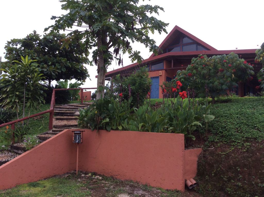The main house, perched on a hill, features a distinctive round design and provides a seamless connection to nature. This property also includes a variety of fruit trees, including specialty oranges, coffee plants, teak, and noni.